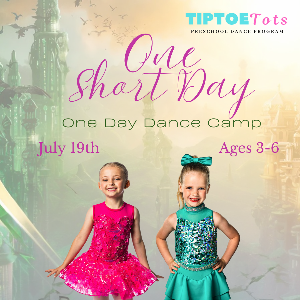 Each day will be filled with themed music, choreography, and tons of fun as dancers learn ballet, tap, jazz, hip hop, and tumbling in a safe and welcoming environment. Activities include a daily snack, creative craft projects, and engaging lessons that follow our TIPTOE Tots Preschool Dance Program curriculum.